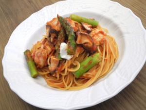 chef et chef しいたけとアスパラのトマトクリームパスタ